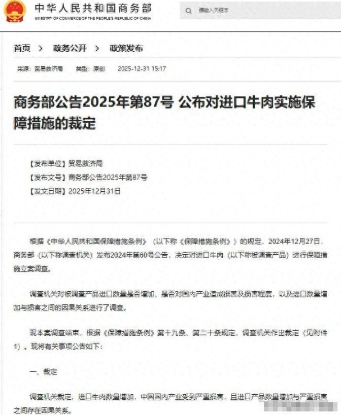 2025年跨年夜,当大家忙着倒数迎新时,商务部一则公告悄然改写了牛肉市场的格局。