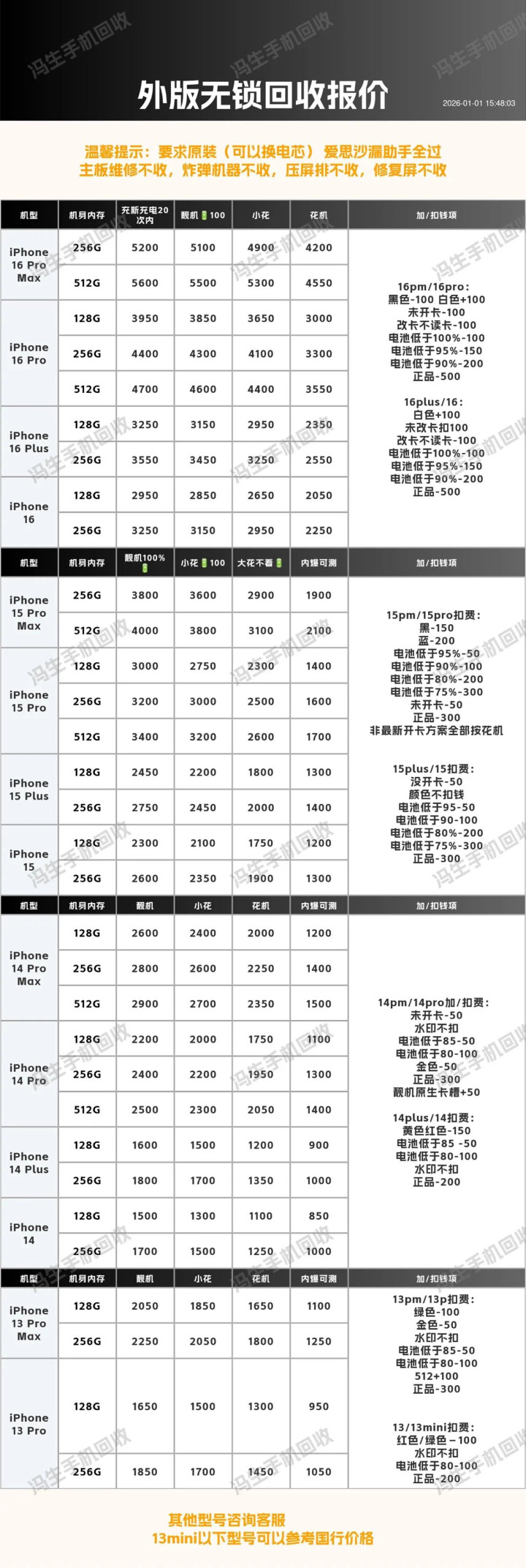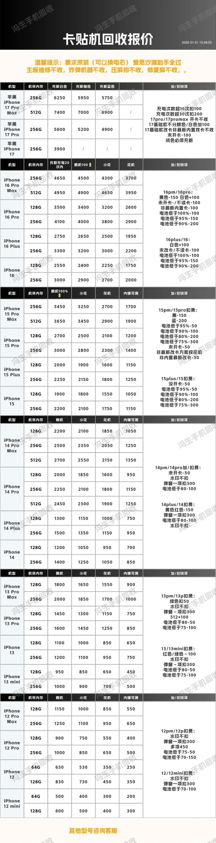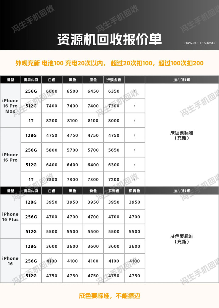 iPhone 17 Pro Max 256G(成色95新/电池≥85%/无拆修)回收约8800元,16 Pro 256G约5200元;15 Pro 256G约4100元,14 Pro 256G约3500元;13 256G约1700元配资专业股票配资网站,12 256G约1200元。元旦走平台官方回收通道,成色佳可享平台公示加价,闲置旧机合规变现换新机~